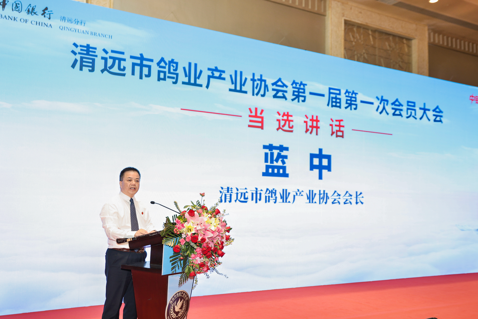 大会选举产生了第一届理事会理事 11 名、监事 1 名。广东正鸽农业科技有限公司董事长蓝中当选为首任会长。"协会的成立,结束了清远鸽业单打独斗的历史。" 蓝中在就职讲话中表示,协会成立后将率先启动和做好三项重点工作:一是制定《清远鸽养殖技术规范》和《清远鸽产品质量标准》;二是建立会员信用评价体系和产业大数据平台;三是组织会员参加国内外农产品展销会,统一打造 "清远鸽" 区域公用品牌。协会将搭建政企沟通的桥梁、行业自律的标杆、对外合作的窗口,坚持 "种养结合是根基,技术创新是核心;产业出海是路径,供应链条是效益",让清远鸽飞出清远、飞向世界。